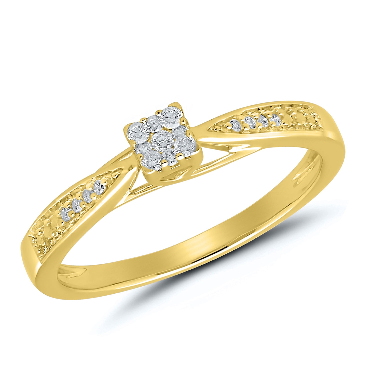 Ring Edelstein: Diamant Edelsteinform: Brillantschliff Gesamtgewicht: 0,13 ct. Reinheit: keine sichtbaren Einschlüsse (SI) Farbe: feines Weiß (TW) Schliffgüte: sehr gut Steinanzahl: 11