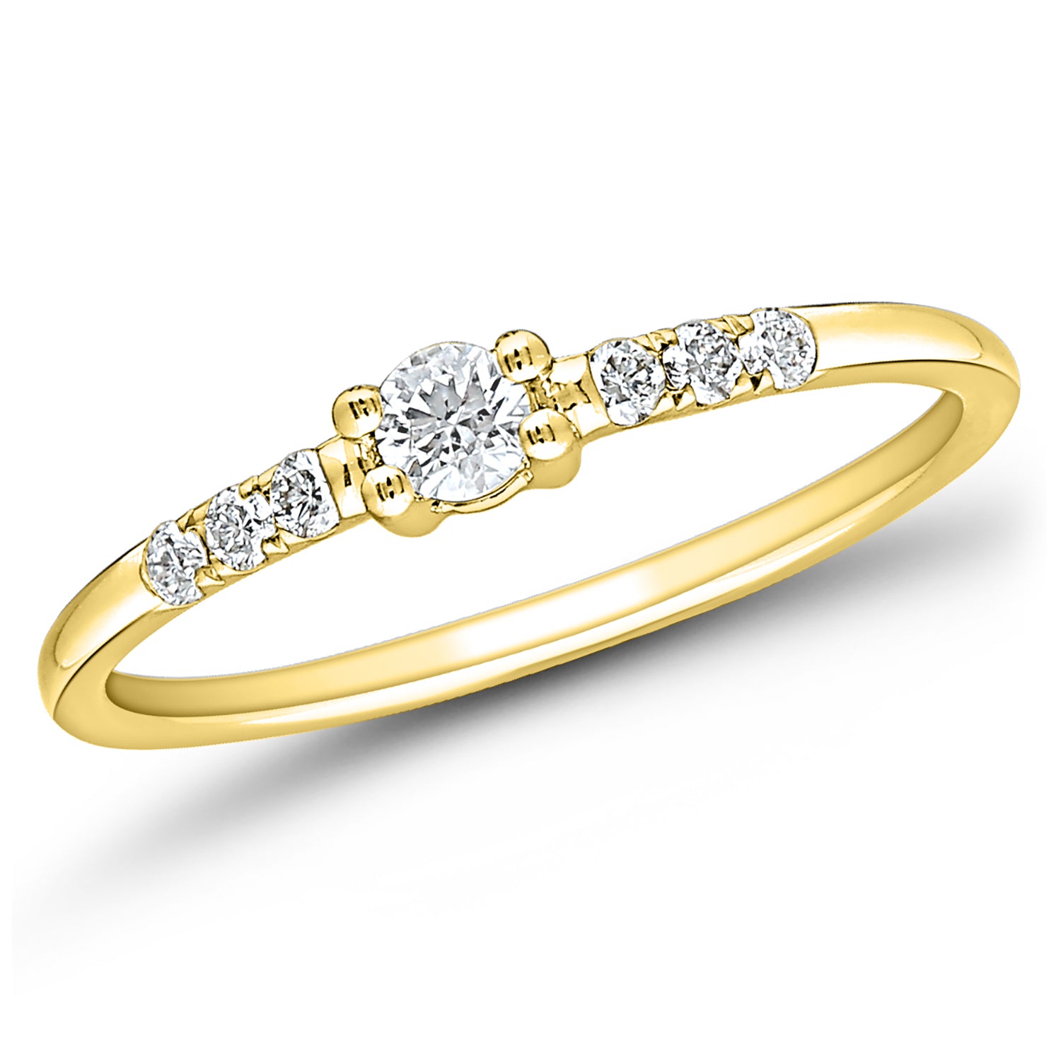 Ring Edelstein: Diamant Edelsteinform: Brillantschliff Gesamtgewicht: 0,20 ct. Reinheit: keine sichtbaren Einschlüsse (SI) Farbe: feines Weiß (TW) Schliffgüte: sehr gut Steinanzahl: 7